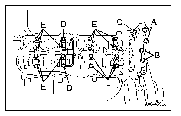 The cylinder head bolts are tightened in 3 progressive steps (Procedures "A" and "B").