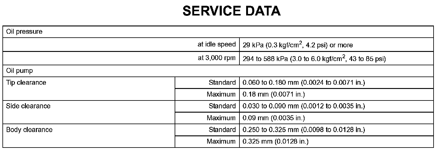 Lubrication - Service Data:
