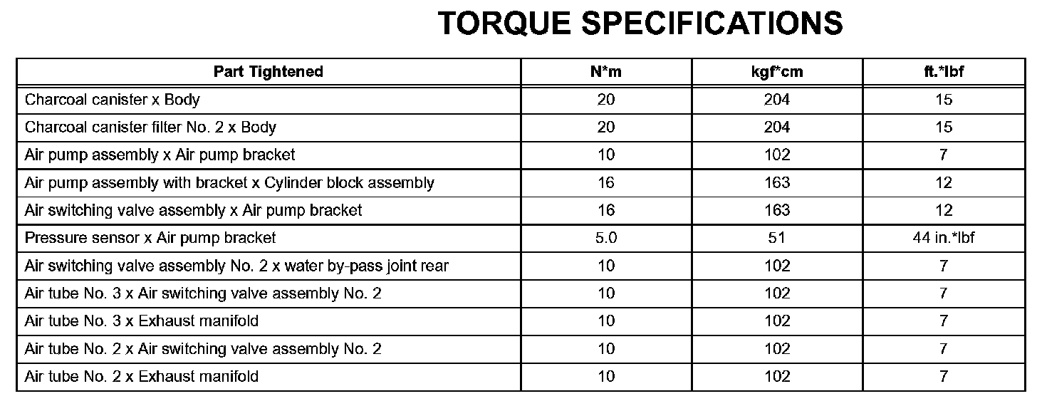 Emission Control - Torque Specifications: