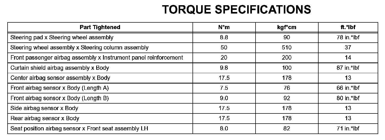 Supplemental Restraint System - Torque Specifications: