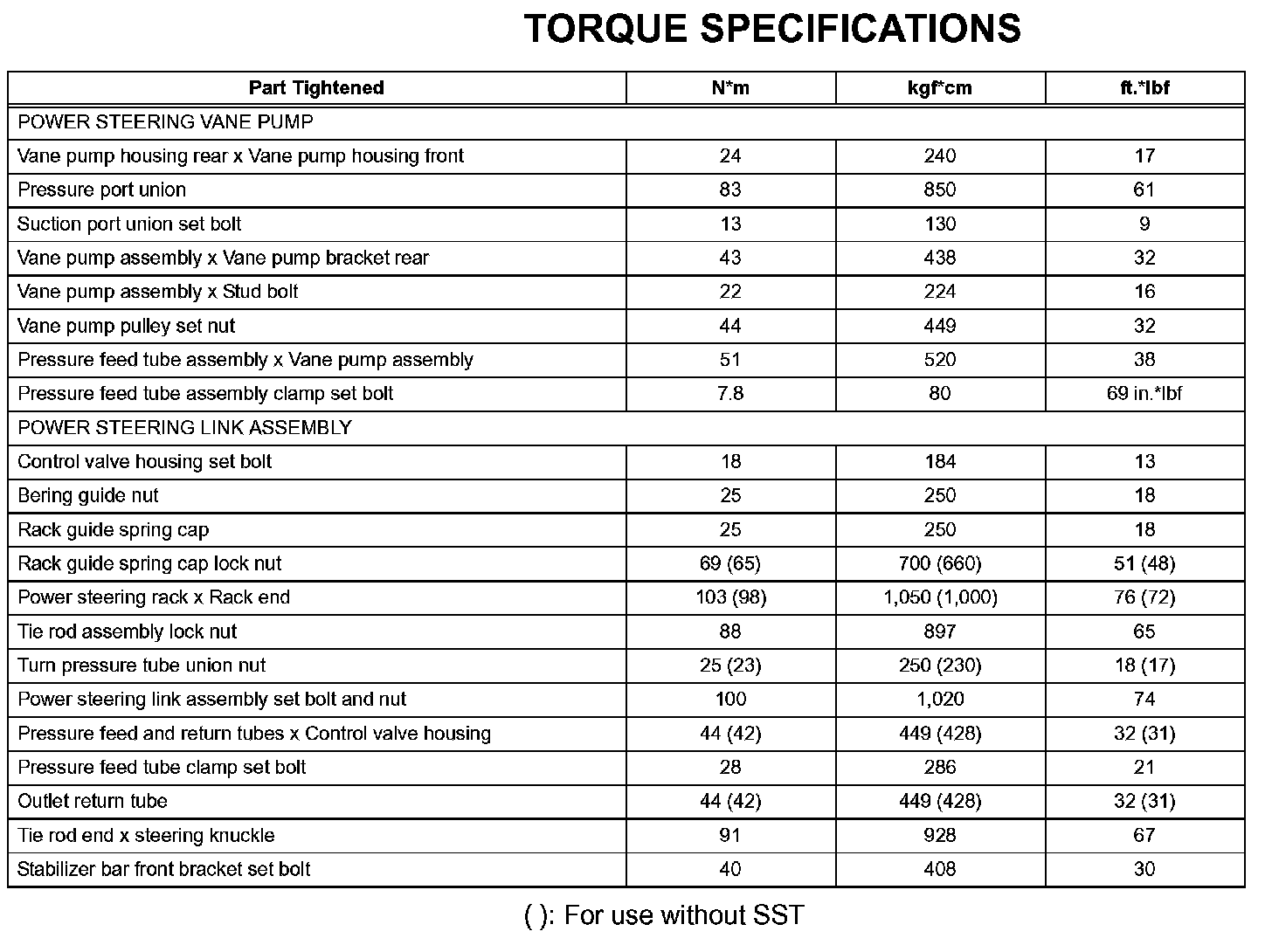 Power Steering - Torque Specifications: