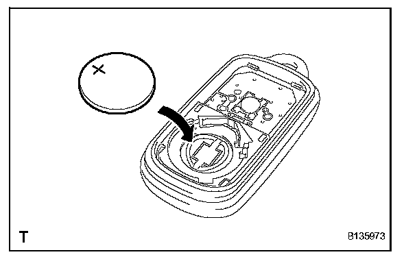 1. Install the battery (lithium battery: CR2016) with the positive (+) side up, as shown in the illustration.