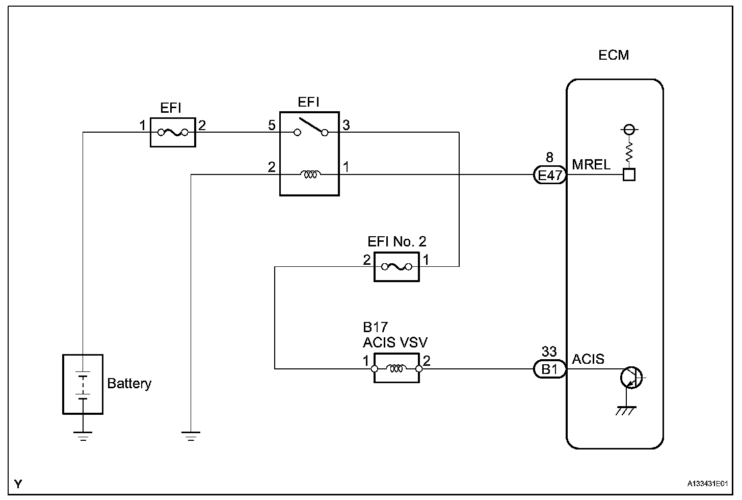 This circuit opens and closes the Intake Air Control Valve (IACV) in response to changes in the engine load in order to increase the intake efficiency (ACIS: Acoustic Control Induction System).