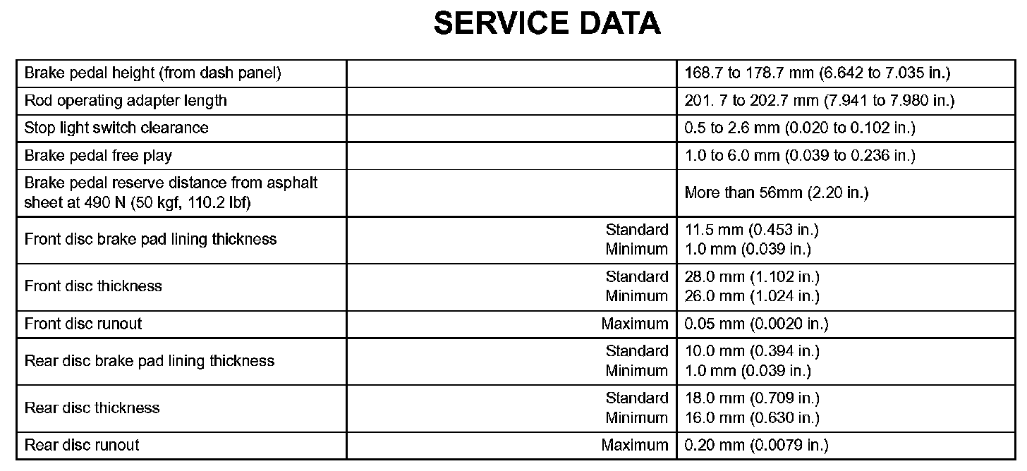 Brake - Service Data: