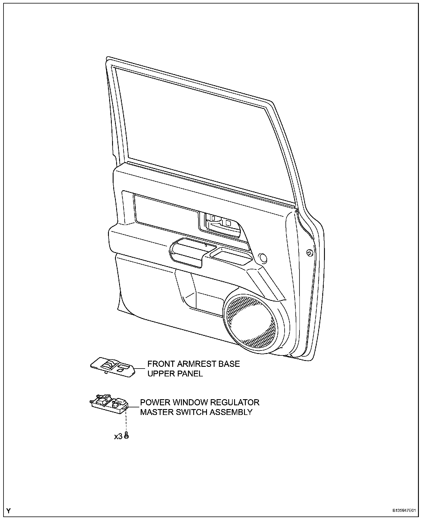 a. Install the power window regulator master switch with the 3 screws.
