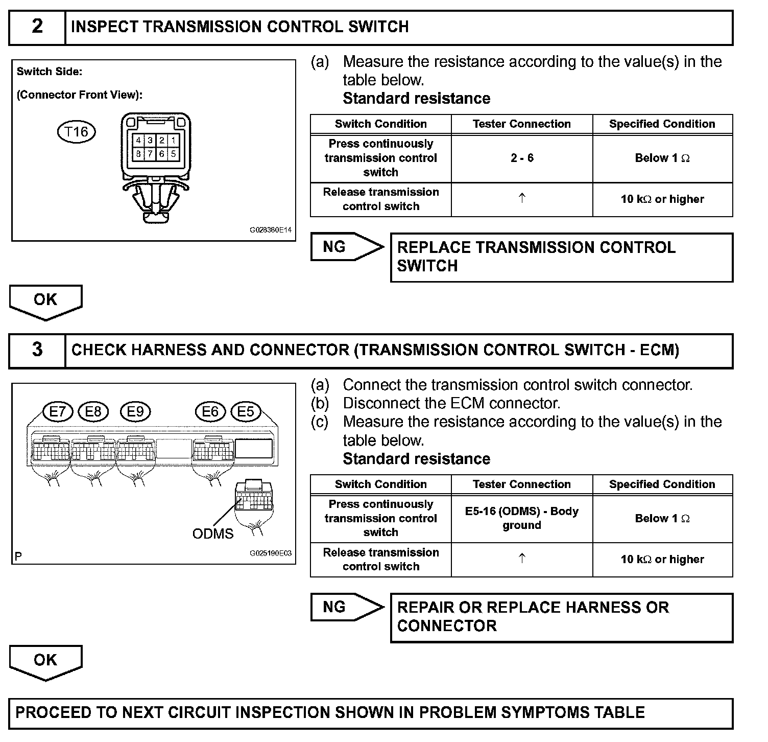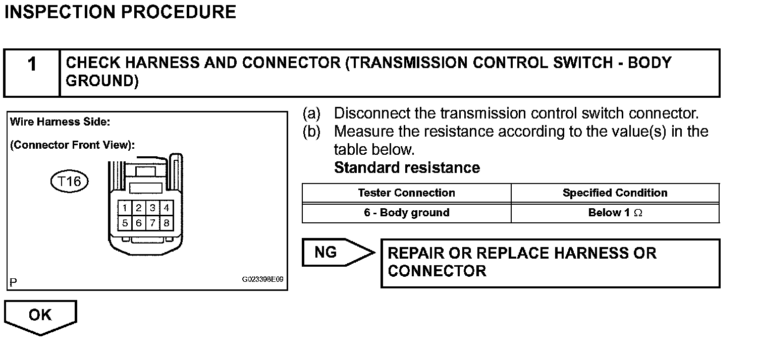 The O/D main switch (transmission control switch) is a momentary type switch. When pressing the O/D main switch, the O/D OFF indicator light lights up and the ECM prohibits shifting into O/D, and when pressing it once again, the O/D OFF indicator light goes off and the ECM allows shifting into O/D. Turning the IG switch OFF will reset the O/D OFF indicator light.