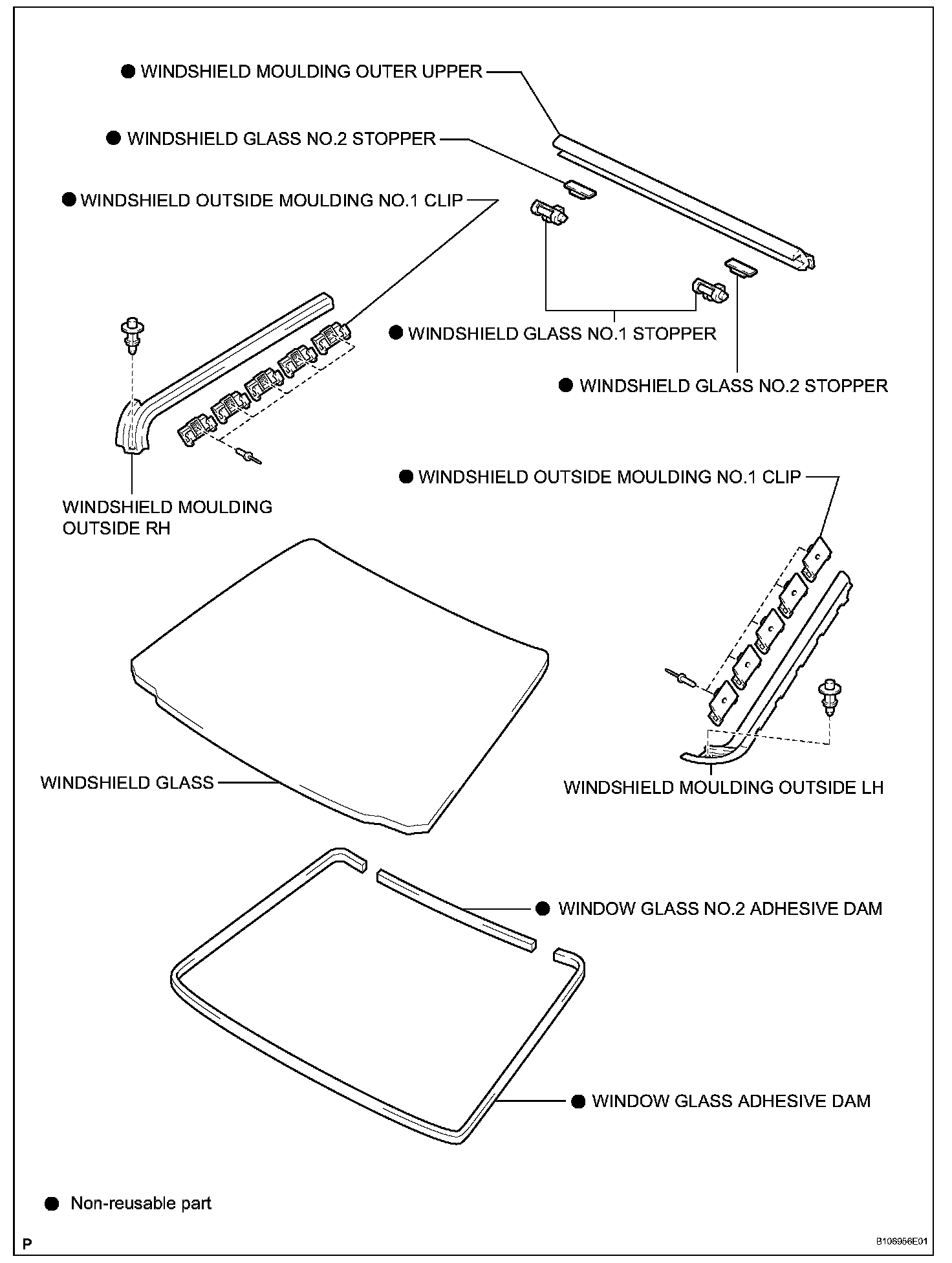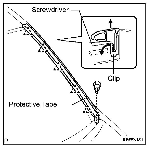 d. Remove the windshield outside moulding clip No.1.