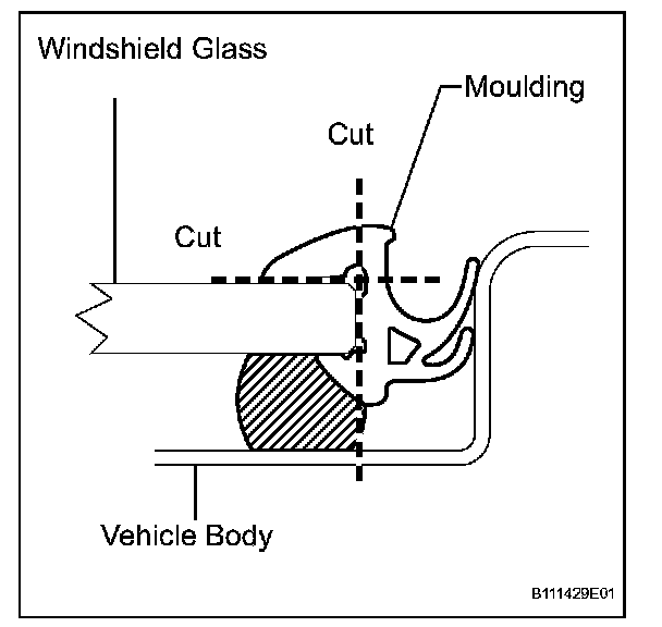 NOTICE: Leave as much adhesive on the vehicle body as possible when removing the glass.