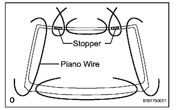 b. From the interior, insert piano wire between the vehicle body and glass, as shown in the illustration.