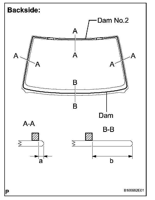 a. Coat the installation part of the windshield glass adhesive dam with Primer G.
