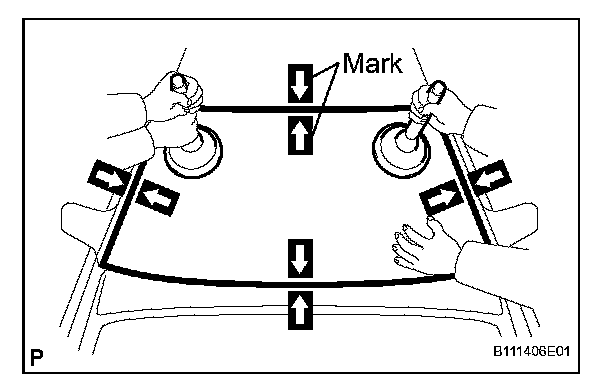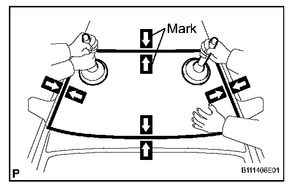 3. Place reference marks between the glass and vehicle body.
