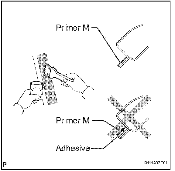HINT: If the area other than that specified is coated by accident, wipe off the primer with a clean shop rag before it dries.