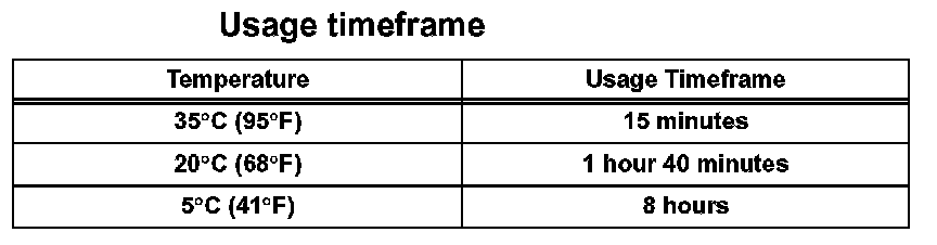 HINT: After cutting off the tip, use all adhesive within the time described in the table below.
