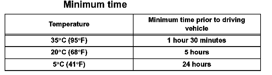 NOTICE: Do not drive the vehicle for the amount of time described in the table below.