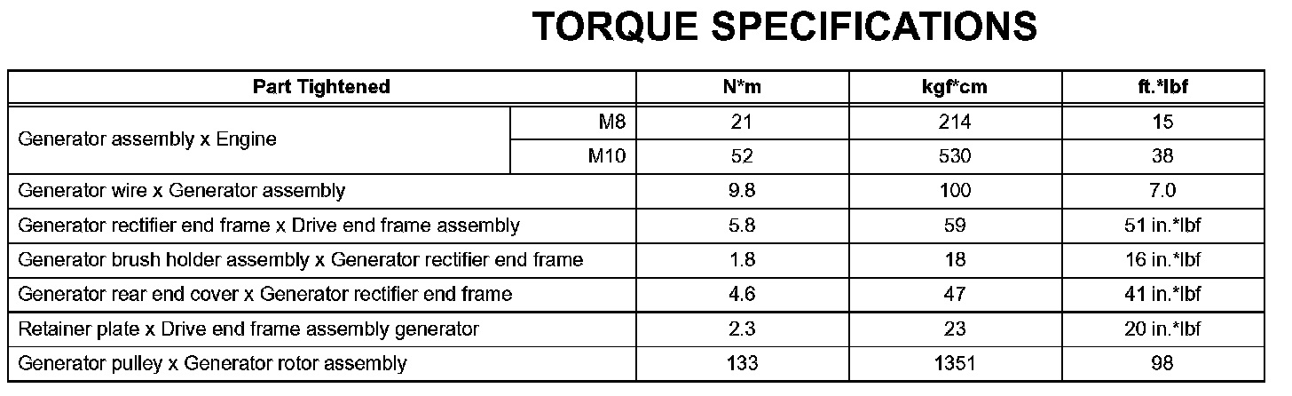 Charging - Torque Specifications: