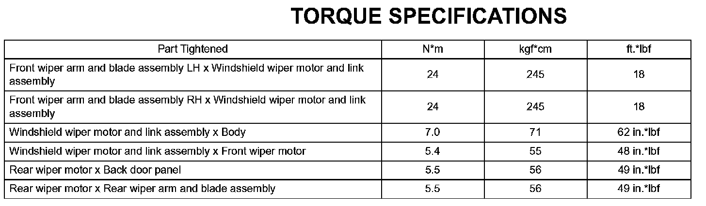 Wiper And Washer - Torque Specifications: