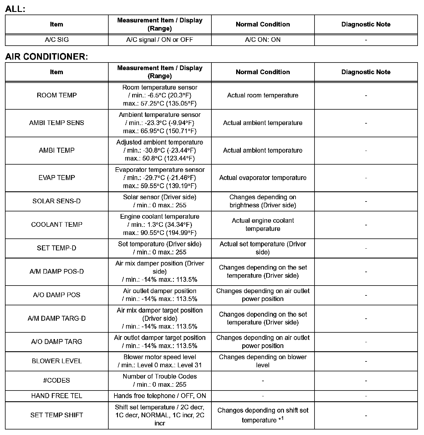 DATA LISTHINT: From the DATA LIST displayed on the intelligent tester, you can read the values of the displays, sensors, actuators and so on without parts removal. Reading the DATA LIST as the first step of troubleshooting is one way to shorten labor time.