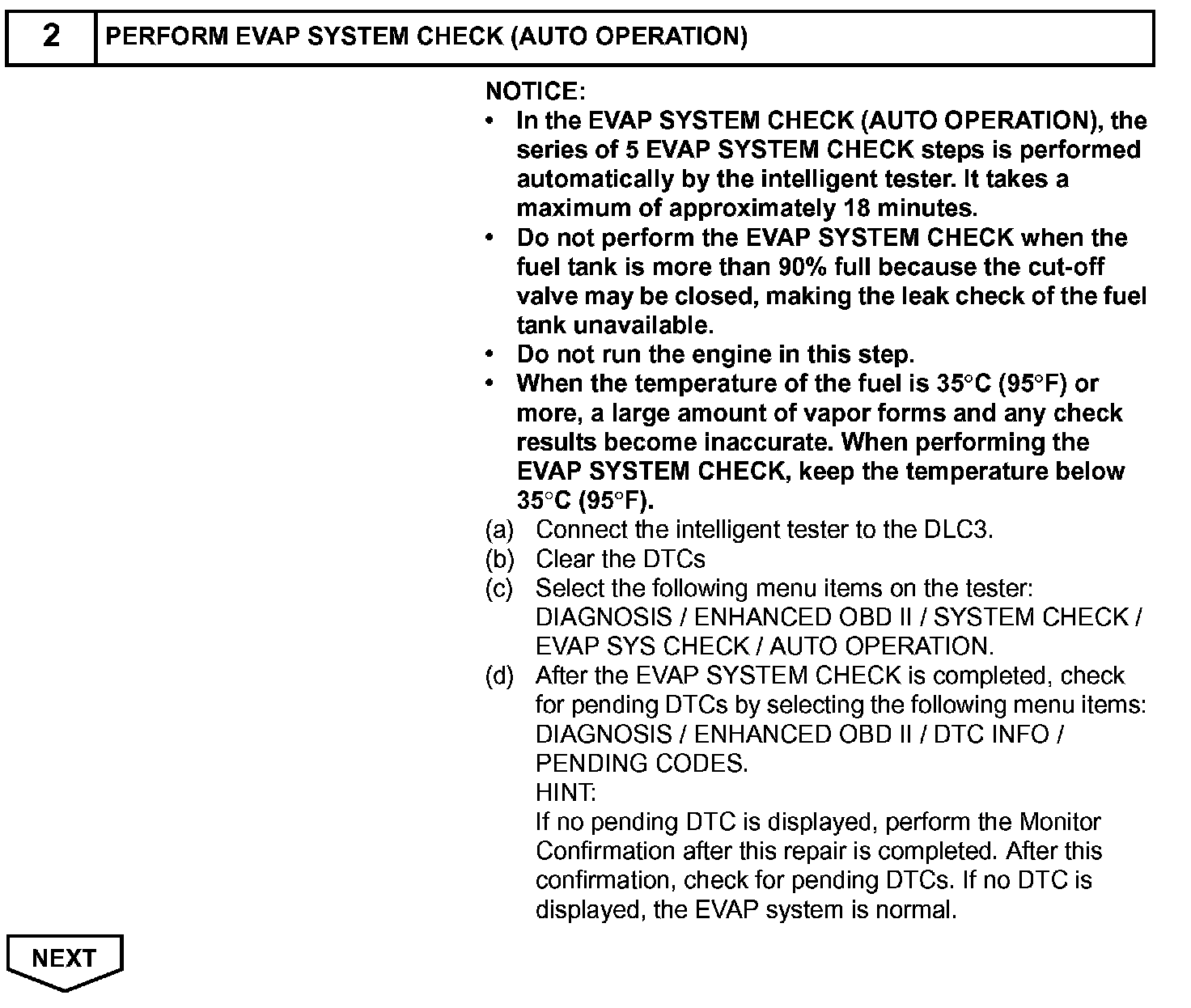 - Using intelligent tester monitor results enables the EVAP (Evaporative Emission) system to be confirmed.
