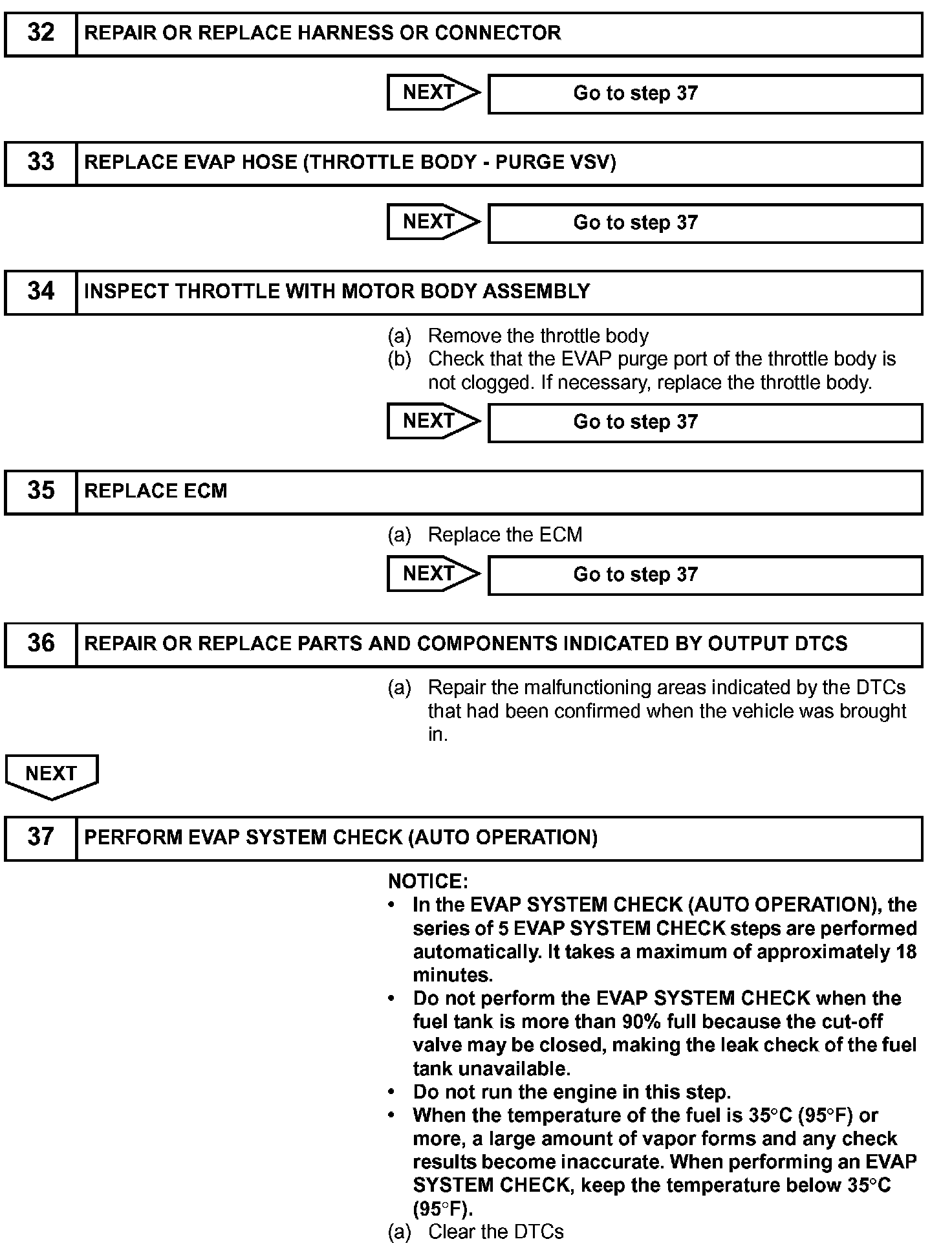 HINT: After a repair, check Monitor Status by performing the Key-Off Monitor Confirmation and Purge Flow Monitor Confirmation described.