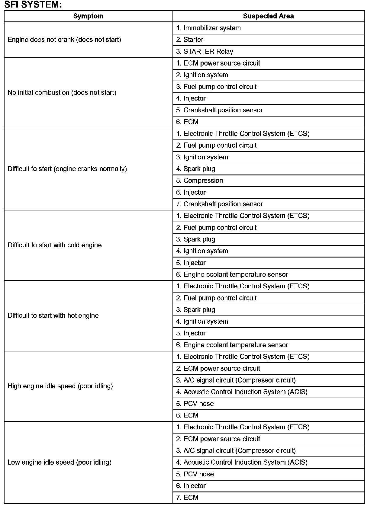 Problem Symptoms Table-SFI System (Part 2):