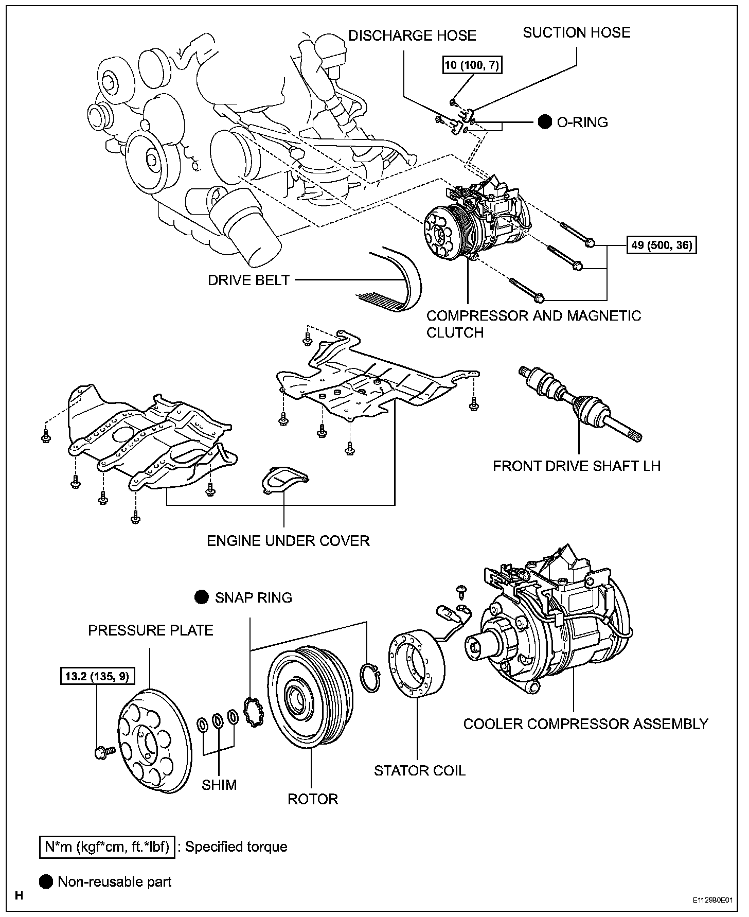 Torque: 49 N.m (500 kgf.cm, 36 ft.lbf)