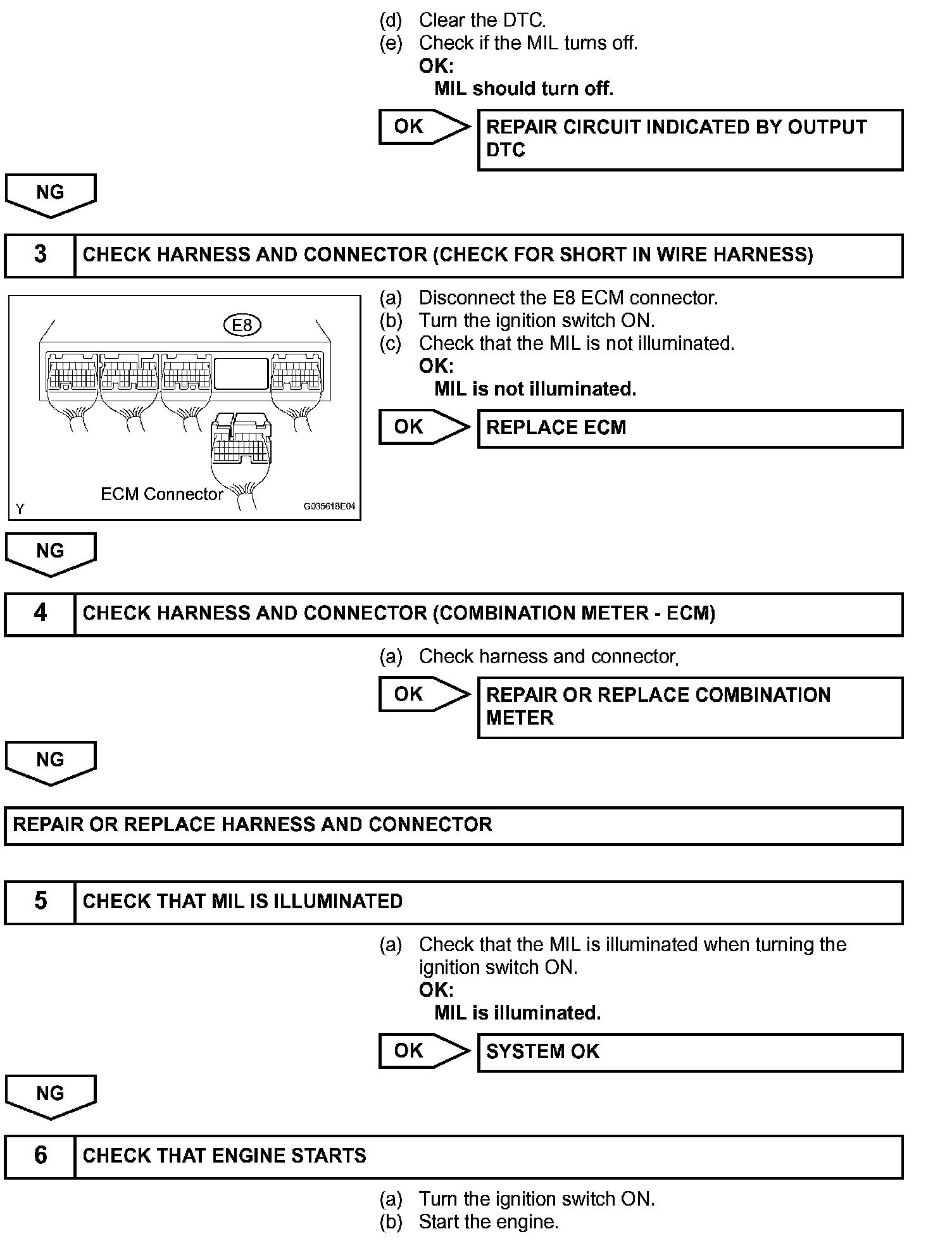 If the ECM detects trouble, the MIL illuminates. At this time, the ECM records a DTC in the memory.
