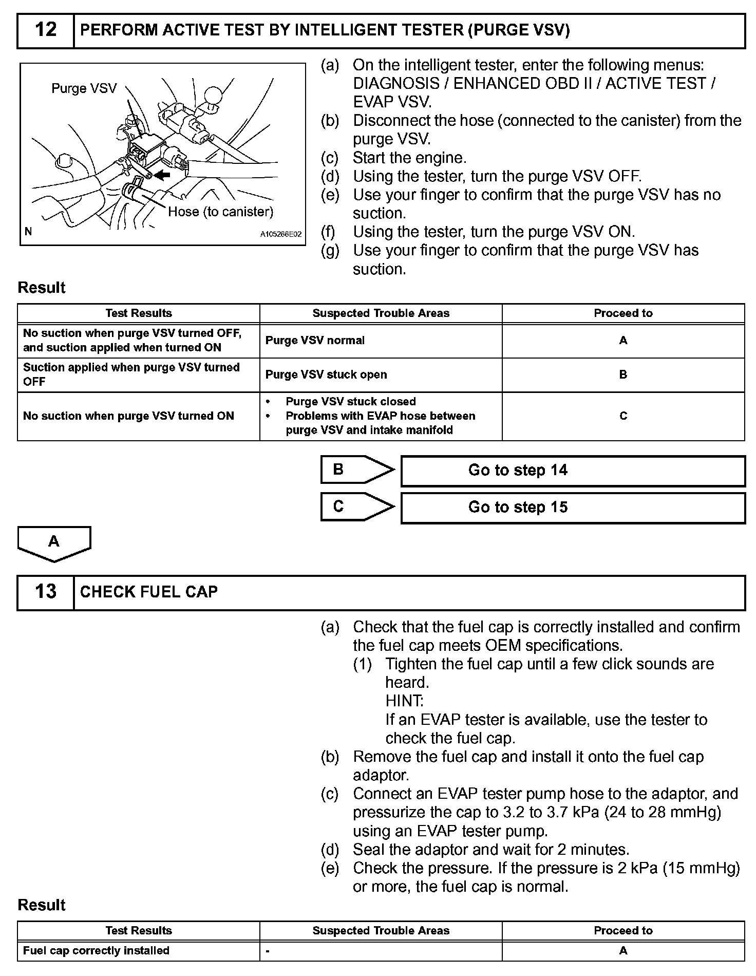 While the engine is running and the purge Vacuum Switching Valve (VSV) is ON (open), the ECM monitors the purge flow by measuring the EVAP pressure change. If negative pressure is not created, the ECM begins the 2nd monitor.