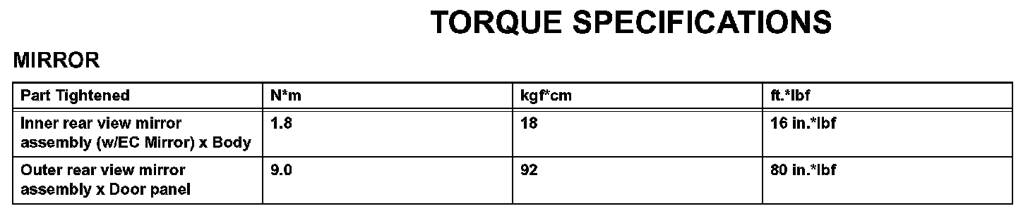 Mirror - Torque Specifications: