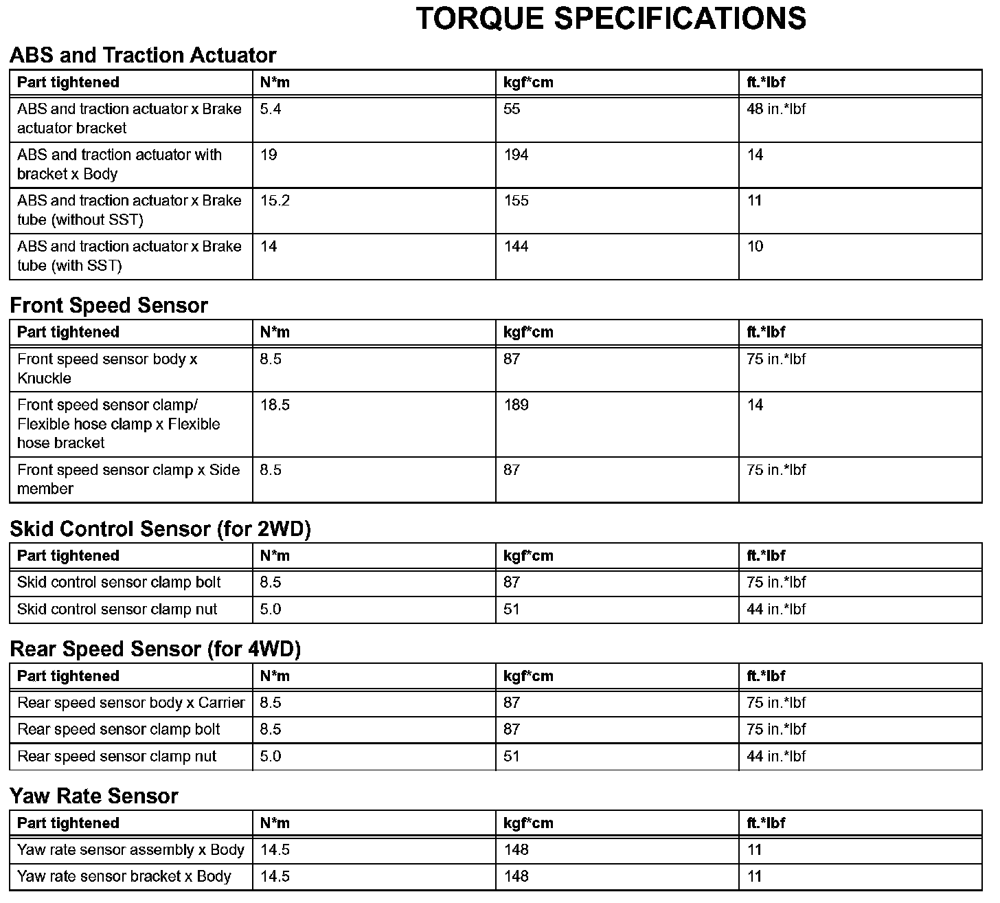 Brake Control - Torque Specifications: