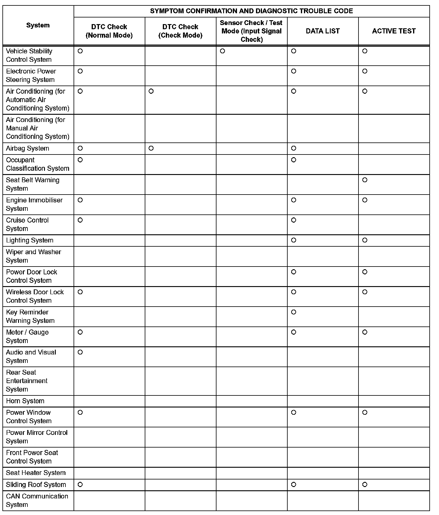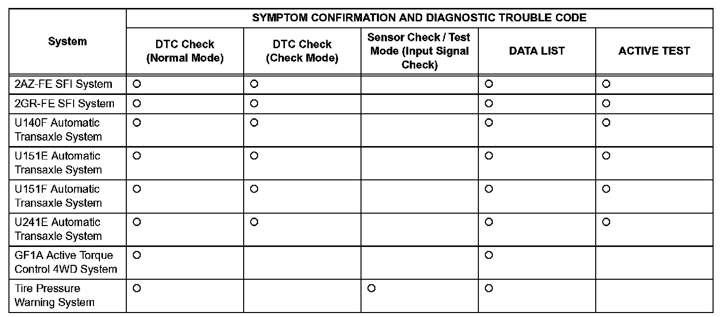 By using these functions, the problem areas can be narrowed down and troubleshooting is more effective. Diagnostic functions are incorporated in the following system in the RAV4.