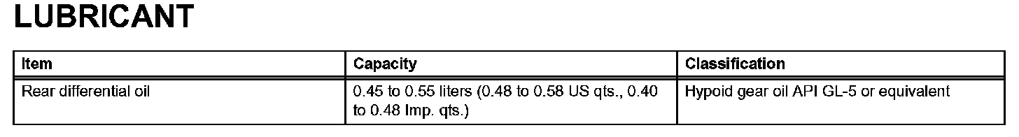 Differential - Lubricant: