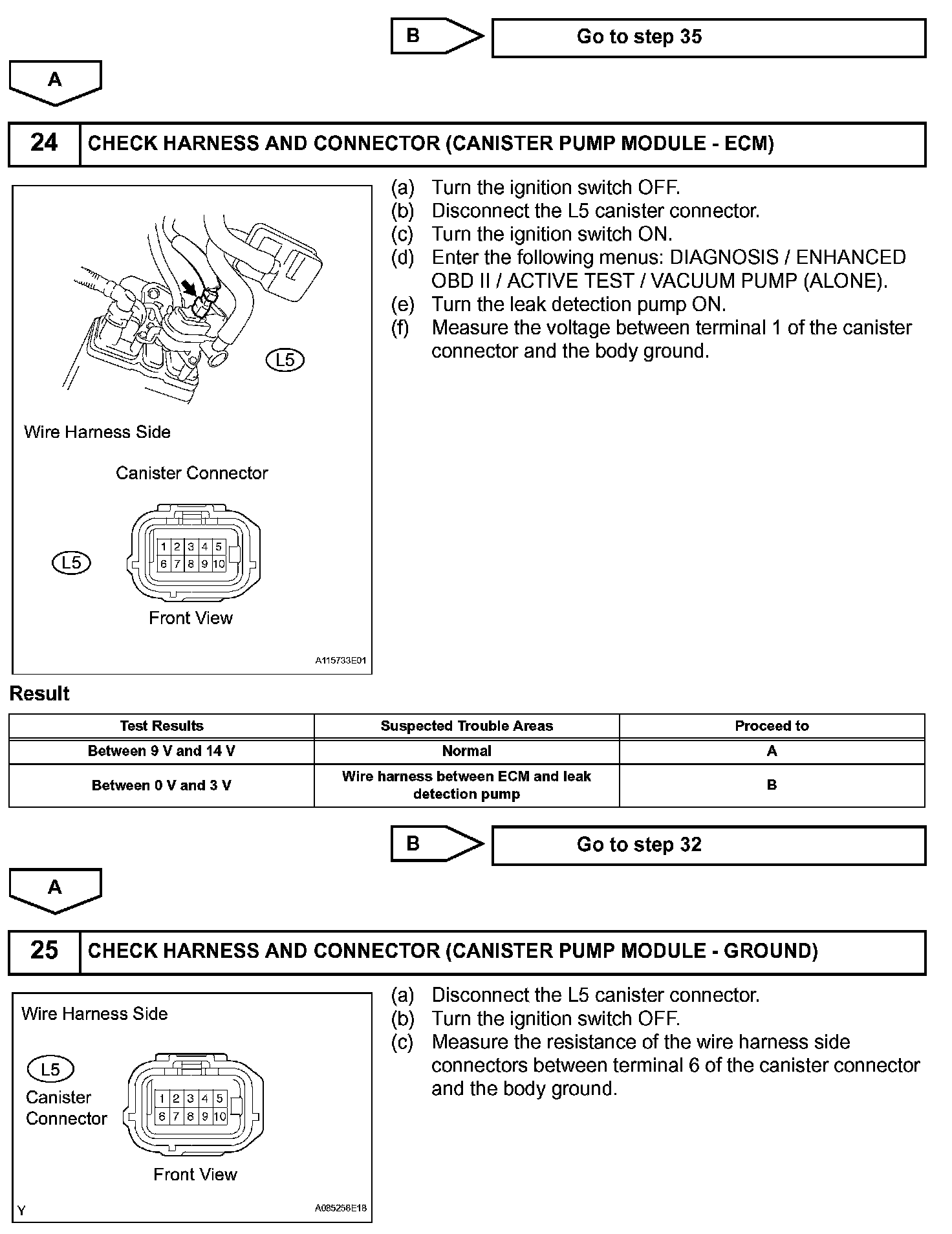 The leak detection pump creates negative pressure (vacuum) in the EVAP system and the pressure is measured. Finally, the ECM monitors for leaks from the EVAP system and malfunctions in both the canister pump module and purge VSV, based on the EVAP pressure.