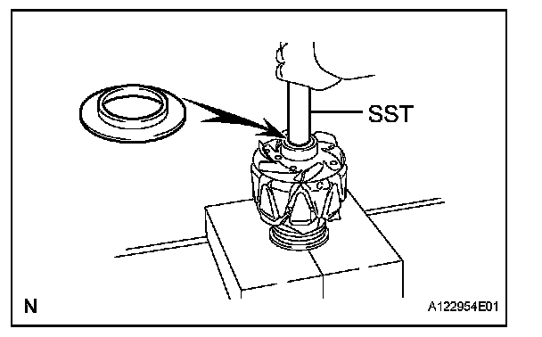 b. Using SST and a press, press in a new bearing.