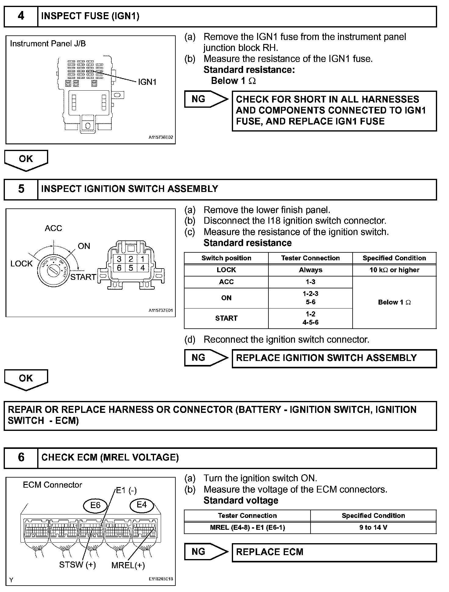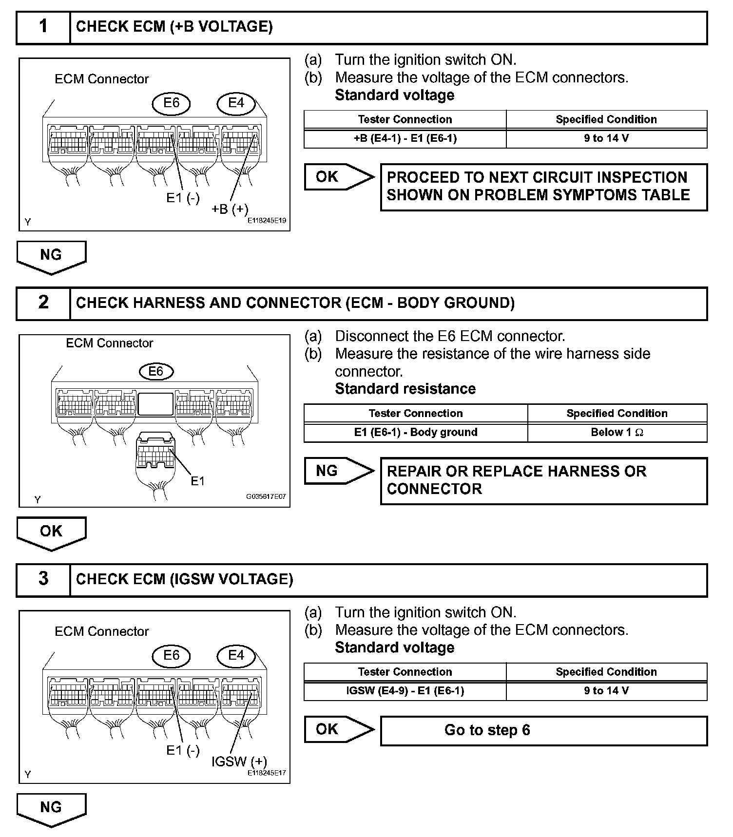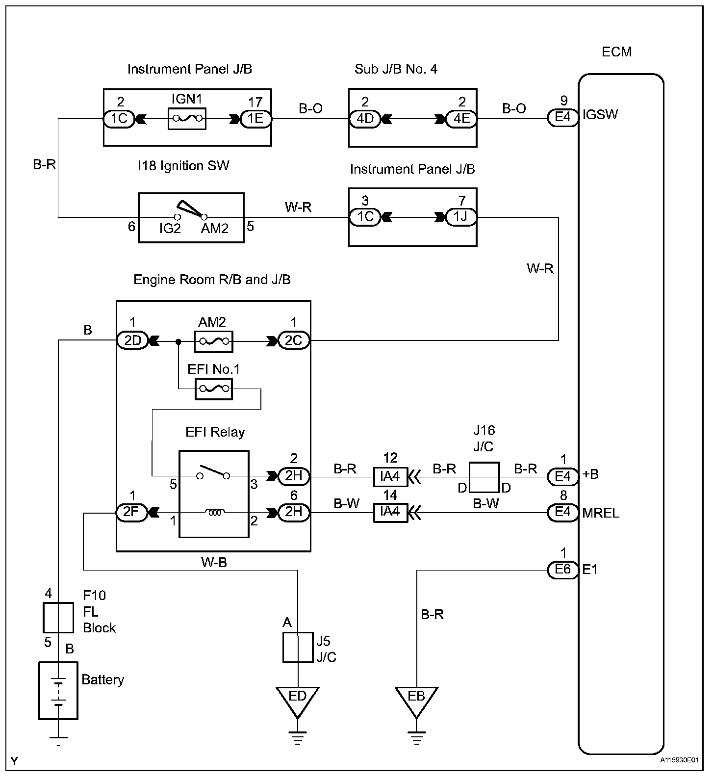 This signal causes current to flow to the coil, closing the contacts of the EFI relay and supplying power to terminal +B of the ECM.