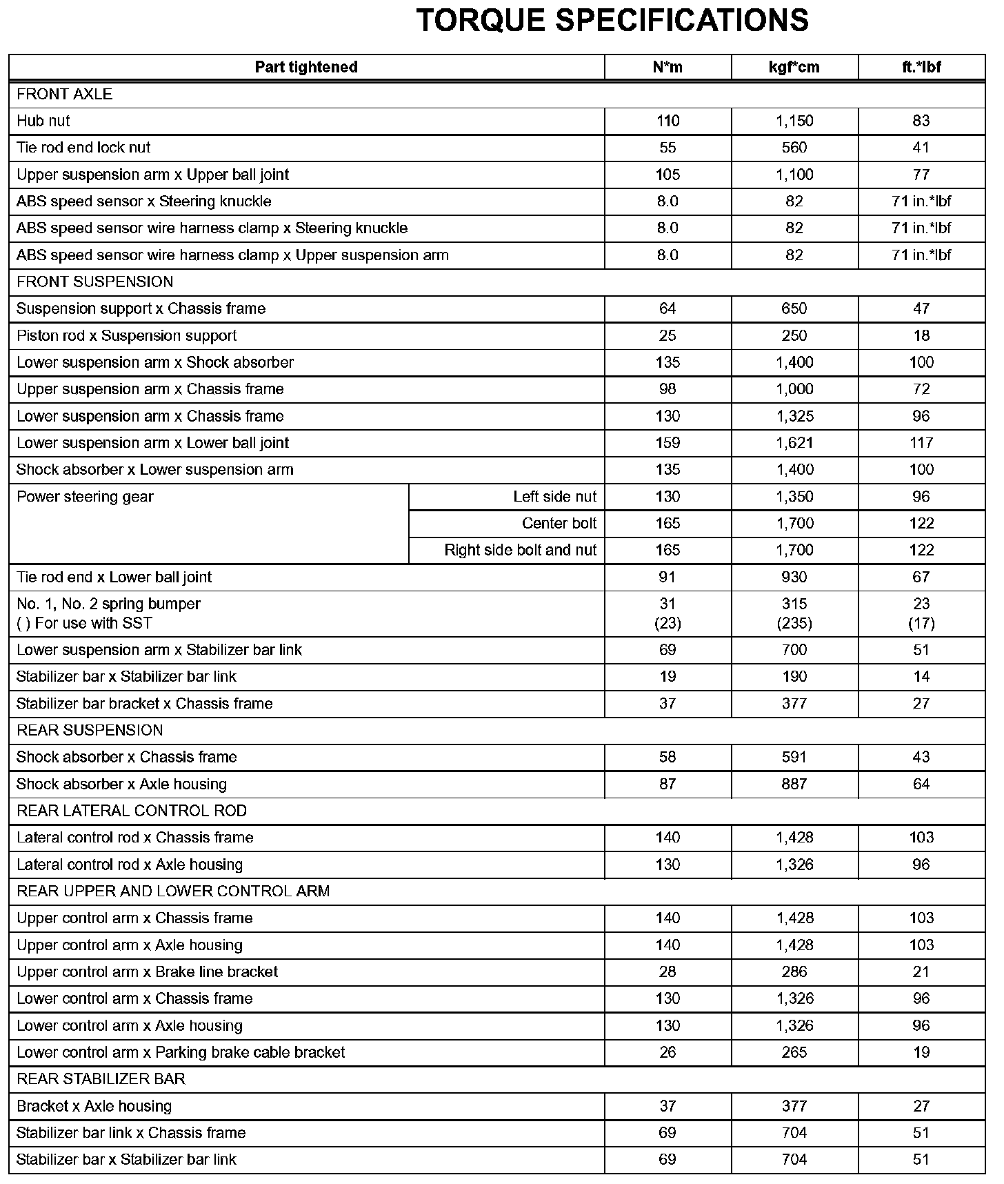 Suspension-Torque Specifications: