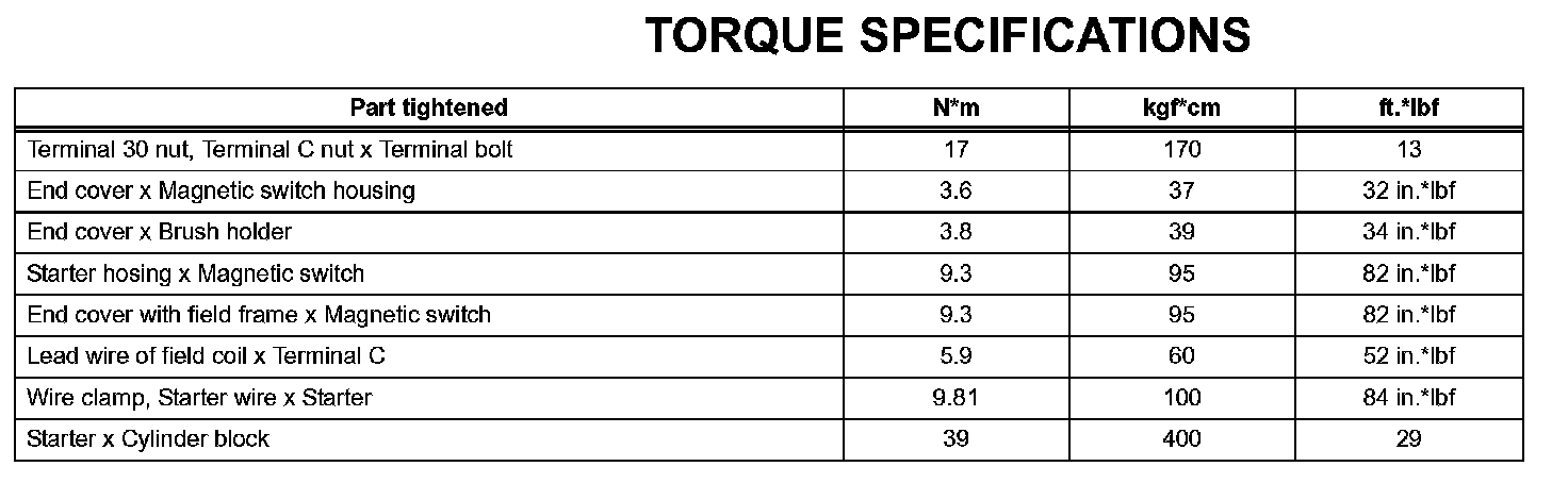 Starting - Torque Specifications: