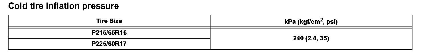 Cold Tire Inflation Pressure: