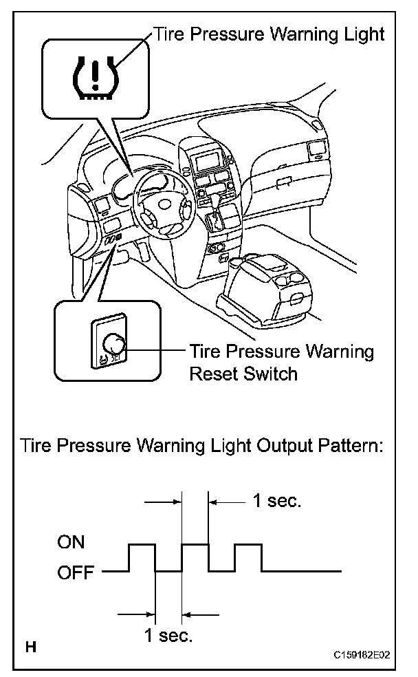 (f) Check that the tire pressure warning light blinks 3 times (1 second ON, 1 second OFF).