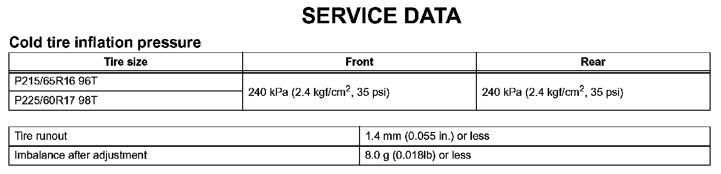 Tire And Wheel - Service Data: