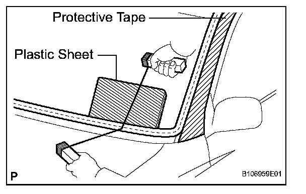 HINT: Apply protective tape to the outer surface of the vehicle body to prevent its surface from being scratched.
