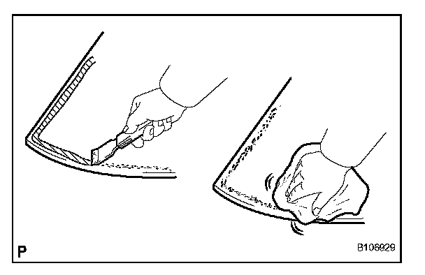 a. Using a scraper, remove the damaged stoppers, dams and adhesive sticking to the glass.