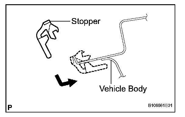 a. Install 2 new stoppers to the vehicle body, as shown in the illustration.