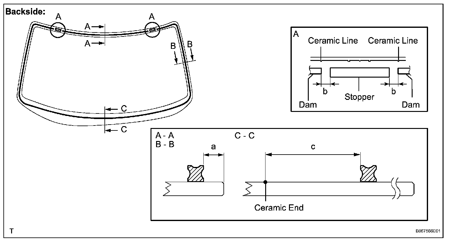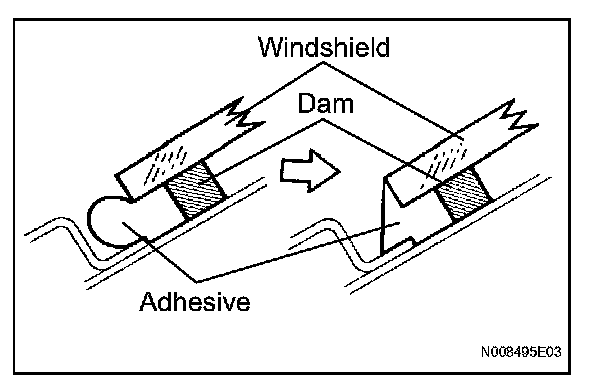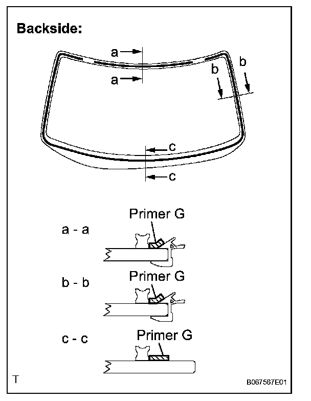 a. Coat the installation part of the windshield glass adhesive dam with Primer G.