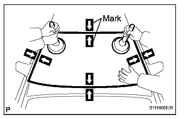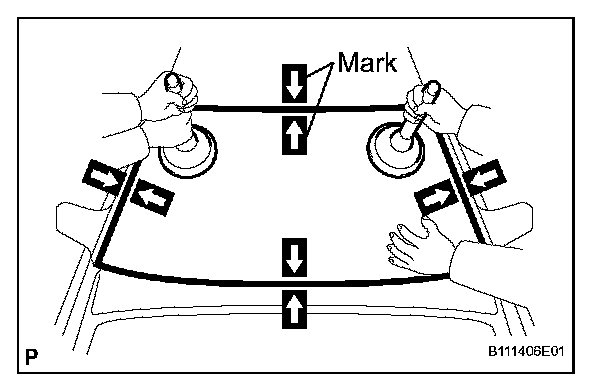 3. Place reference marks between the glass and vehicle body.