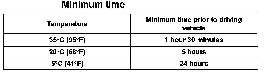 NOTICE: Do not drive the vehicle for the amount of time described in the table below.