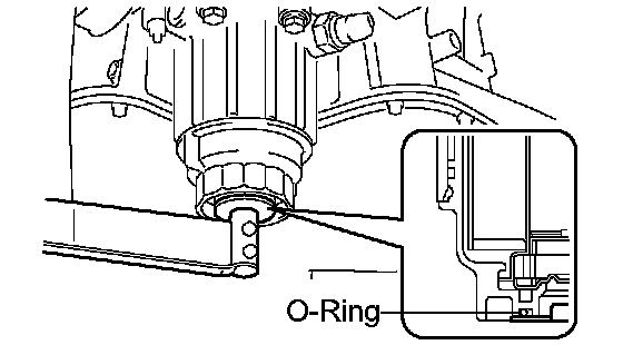 (b) Apply a light coat of engine oil to a new O-ring and install it to the oil filter cap.