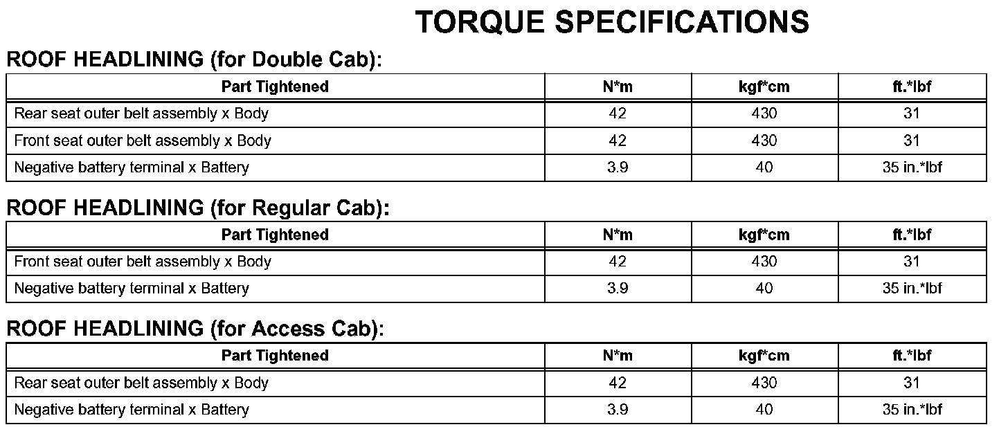 Interior-Torque Specifications: