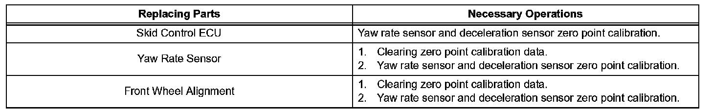 HINT: After replacing the skid control ECU and/or yaw rate and deceleration sensor, be sure to perform yaw rate sensor and deceleration sensor zero point calibration.