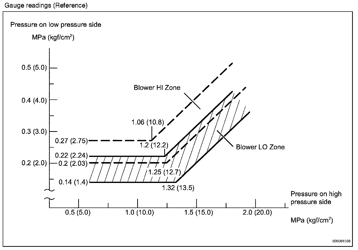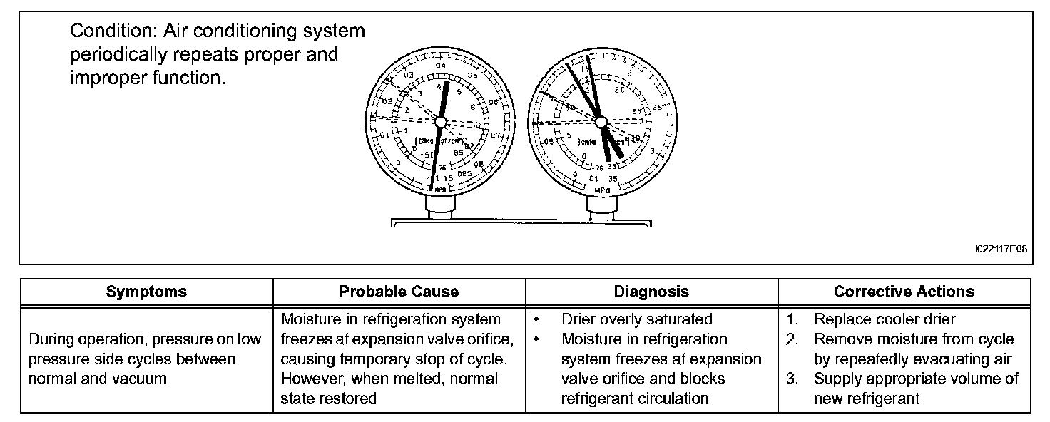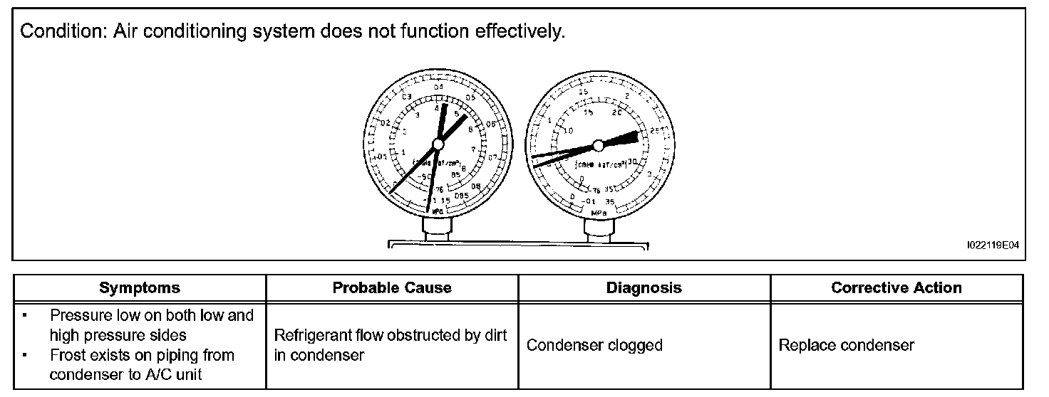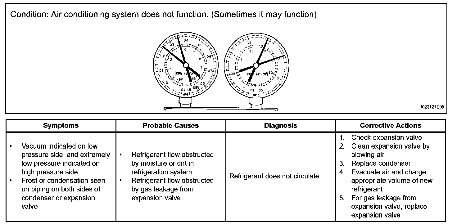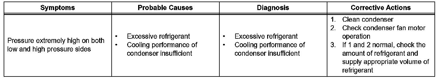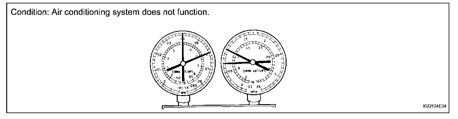 a. This is a method to specify trouble areas by using a manifold gauge set. Read the manifold gauge pressure when the following conditions are established.