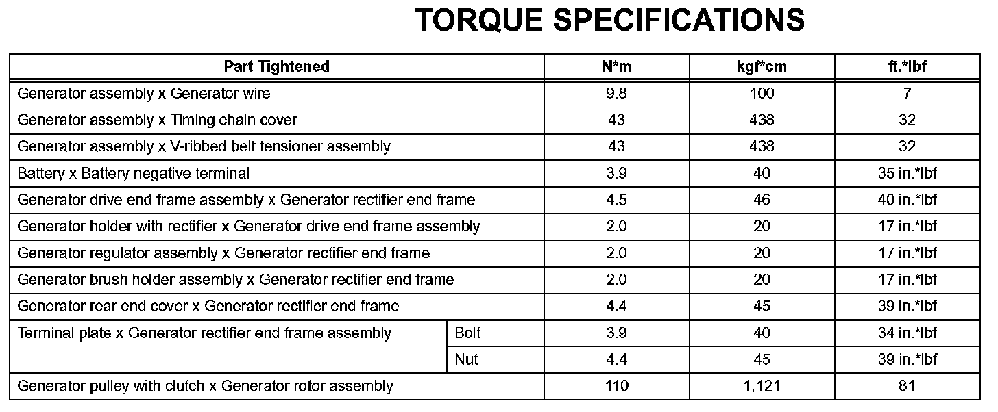 Charging - Torque Specifications: